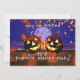 Invitation avec mon oeuvre numérique de deux citrouilles d'Halloween riant en remuant la chute laisse sous une pleine lune invitant tout le monde à une fête de sculpture citrouille.