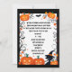La silhouette d'une petite sorcière est entourée de jack-o-lanternes et de chauves-souris, contre un cadre noir sur cette invitation à la fête d'Halloween mignonne et amusante. Cela fonctionnerait bien pour les ados et les enfants, ainsi que pour les adultes. Le dos est noir.