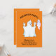 Belle Halloween Trumpy et Munchy fantômes Invitation. Il y a un motif citrouille sur arrière - plan orange à l'arrière. Tous les textes et numéros sont prêts à être personnalisés.