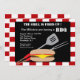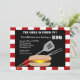 C'est l'invitation parfaite de commencer ce barbecue outre de la droite. Cet invitation est placé sur un arrière - plan noir avec la frontière checkered rouge et blanche. Il y a un hamburger avec des batteries de cuisine par spatule et une grande fourchette derrière l'hamburger. Adorable pour toute partie ! ©cupcakecuties