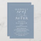 Elegantly announce your happily ever after with our modern dusty blue theme, modern classy and elegant wedding reception celebration invitation card, "Happily Ever After", hors d'oeuvres, drinks, dessert, and dancing after the wedding ceremony. Tailored for couples continuing their love story, this invitation strikes a perfect balance of sophistication and charm, setting the scene for an unforgettable event. Featuring a modern contemporary script design, it adds a touch of timeless grace to your special day. Designed by the talented TeeshaDerrick, this invitation is a stylish expression of your enduring love.