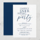 Mark the beginning of your forever with elegance using our contemporary classy navy blue theme wedding reception celebration invitation card, "Happily Ever After Party". Perfect for couples extending their joyous occasion, this invitation exudes sophistication with a hint of playfulness, setting the stage for a memorable event (lunch, brunch, dinner and dancing). Adorned with a timeless modern script design theme, it adds a touch of refined charm to your festivities. Crafted by TeeshaDerrick, this invitation promises to beautifully capture your love story.