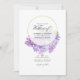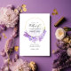 Aquarelle violet - faire-part de mariage floral lilas avec cadre géométrique doré personnalisable selon vos spécificités. Idéal pour un thème ou un mariage de jardin. Le code QR au verso dirige vers votre site mariage où les gens peuvent en savoir plus et rsvp.
