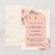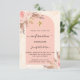 Un cadre en arche et une impression de marbre en or rose comme arrière-plan. Décoré de fleurs en or rose et de fleurs roses, de roses et d'herbe de pampas. Personnalisez et ajoutez un nom et des détails.
