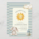 Celebrate the arrival of your little one with this adorable 'Here Comes the Sun' baby shower invitation. Featuring a charming watercolor sun graphic, a fluffy cloud, and a sweet bunny plush toy, this design sets a joyful and whimsical tone for your special event. The soft blue and cream striped background adds a touch of classic charm, making it perfect for a baby boy's shower. This invitation is designed to bring smiles and excitement as you share the wonderful news with your loved ones, announcing a baby shower in honor of Shannon.