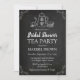 Cette invitation a un arrière - plan de tableau noir et des lettres calcaires avec des éléments dessinés à la main. Célébrez la future mariée avec une fête du thé dans votre café ou salon de thé favori.
