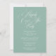 Happily Ever After Party Wedding Réception Elégant script blanc Photo Wedding Réception Invitations Invitations Einvite présente le texte "Happily Ever After Party" dans élégant script de calligraphie blanche sur un arrière - plan vert saule avec votre photo préférée au verso. Personnalisez avec vos informations de célébration de mariage. Disponible en tant qu'invitation papier physique et en téléchargement instantané d'invitations numériques imprimables. Conçu pour vous par Evco Studio www.zazzle.com/store/evcostudio