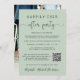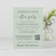Élégant salon vert sage ou faire-part mariage privé et réception de mariage ou invitation de fête de fête. "Happily Ever After Party" est écrit dans un mélange de typographie simple et d'un script élégant avec des swashes. Personnalisez votre faire-part et votre invitation, créez un code QR lié à votre site mariage pour que vos invités puissent scanner pour plus d'informations et à RSVP en ligne, et ajoutez vos noms dans un script signature. Au verso, vous trouverez votre photo de mariage préférée, vos prénoms et les dates de mariage et de réception.