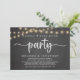 Marquez le début de votre éternité avec élégance en utilisant nos lampes à cordes rustiques cottage chalkboard thème mariage elopement carte d'invitation, "Happily Ever After Party". Parfait pour les couples qui souhaitent profiter de leur joyeux événement, cette invitation exhale le raffinement avec un soupçon de jeu, préparant le terrain pour un événement mémorable. Décoré avec un thème design contemporain intemporel, il ajoute une touche de charme raffiné à vos festivités. Conçu par TeeshaDerrick, cette invitation promet de capturer magnifiquement votre histoire d'amour.