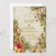 Celebrate your wedding day with timeless tropical elegance. This romantic design features lush hibiscus blooms, soft palm leaves, and painterly botanical details layered over a warm, vintage-inspired background. The refined typography and airy island palette create a sophisticated destination wedding feel that’s perfect for coastal venues, tropical resorts, or summer celebrations.