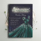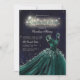 Une aquarelle fantaisie illustrant un ciel nocturne brillant de marine foncée et une majestueuse robe de princesse en vert émeraude foncé avec parties scintillant et étincelles (effets numériques !), décorent cette élégante invitation à la fête d'anniversaire de quinceanera avec un thème féerique enchanté. Une invitation élégante et moderne à la quinceanera pour une fête de conte de fées. Parfait pour les filles qui fêtent leur quinzième anniversaire et qui aiment le cadre de la forêt de contes de fées, le thème de la forêt de fées ou de jardin de fées et vert émeraude ou marine. Veuillez noter que la parties scintillant est un effet numérique, pas une parties scintillant réelle.