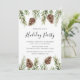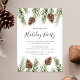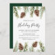 Invités Invitations à votre fête de vacances d'hiver avec nos belles invitations Watercolor Pinecone. Les invitations comportent une bordure supérieure de cônes de pin d'aquarelle brun et de branches de pin vert. Personnalisez les invitations des fêtes du cône de pin en ajoutant les détails de votre fête dans un script de calligraphie moderne. Les invitations se retournent vers un arrière - plan vert de forêt solide. Parfait pour les fêtes de fin d'année et de Noël. Conçu pour être coordonné avec notre collection de cônes de pin d'hiver aquarelle.