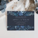 Notre faire-part de mariage Winter Azure au format paysage encadre vos détails mariages avec une bordure supérieure et inférieure de feuillage aquarelle dans des tons glacés bleu marine et bleu ciel. Un choix moderne mais bio pour les mariages d'hiver avec des plantes d'aquarelle peintes de manière complexe.