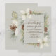 Cônes de pin d'hiver et fleurs blanches sur un beige avec élégant faire-part de mariage de script.