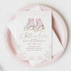 Invitations amis et la famille à la fête d'anniversaire de votre petit avec cette invitation à thème patinage sur glace, avec des flocons de neige roses et or.