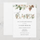 Invitation à saupoudrer bébé avec "oh bébé" en lettres d'or élégantes avec une bordure de à feuillage persistant et de pinecones. Parfait pour un bébé d'hiver. Customisez avec vos informations.