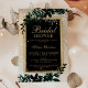 une typographie dorée moderne, chic et élégante Couleur d'eau verte florale Soirée nuptiale de Noël invitation avec feuillage vert aquarelle peint à la main sur un dégradé d'or jaune chic avec neige blanche et flocons de neige. Parfait pour Noël