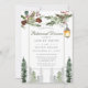 Hiver Pins Rustiques Botanique Lanterne Dîner de répétition Invitation. Belle et élégante répétition de mariage d'hiver invitations dîner avec lanterne enneigée avec branches de pins botaniques rustiques et pins. Ce design mariage moderne et personnalisé peut être facilement personnalisé avec vos propres détails de mariage.