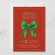 Invitation Holiday Dinner Party Green Satin Bow Red