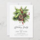 Cette élégante invitation de fête de Noël présente un bel arrangement de pin, de baies sèches et de pinecone sur un arrière - plan blanc. L'invitation est parfaite pour inviter vos amis et votre famille à un rassemblement festif. L'ensemble est festif et sophistiqué, et l'invitation impressionne vos invités.
