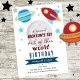 Thème d'anniversaire de l'espace pour les enfants. Facile à personnaliser. Aussi disponible en téléchargement numérique! Printemps, fêtes d'été