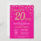 Invitation 20e anniversaire avec Hot Pink et Parties scintillant d'or Arrière - plan diamant. Confetti d'or. Anniversaire adulte. Hommes ou Femmes Anniversaire. Pour plus de personnalisation, cliquez sur le bouton "Customiser" et utilisez notre outil de conception pour modifier ce modèle.
