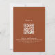 Arrière - plan orange foncé, décoré de tiges d'eucalyptus, sprigs. Personnalisez et ajoutez vos noms et les détails. Dos : arrière - plan orange brûlé foncé. Ajoutez l'URL de votre site Web mariage au code QR pour que vos invités puissent rechercher plus de détails/RSVP
