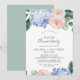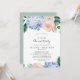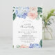 Cette invitation d'anniversaire de mariage de 50 ans avec hydrangea bleu élégant est parfaite pour une fête d'anniversaire de mariage au printemps ou en été. Le design floral classique présente des hydrangeas bleu poudre aquarelle adoucis, accentués de fleurs roses blush neutres et de feuilles vertes.