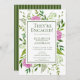 Cette invitation de fiançailles avec des hydrangées roses multicolores, des feuilles flottantes et une coordination des rayures vertes est à la fois moderne et fantaisiste. C'est parfait pour tous ceux qui fêtent un fiançailles du printemps ou de l'été ! En quelques secondes vous pouvez voir vos belles invitations. Les modèles sont très faciles à utiliser. Choisissez simplement Personnalisez ce modèle, tapez vos informations, et voilà - vos invitations uniques et magnifiques sont prêts !