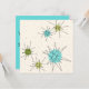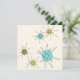 Ce motif Iconic Atomic Starbursts Invitation personnalisable présente des étoiles atomiques emblématiques. C'est vrai ! L'ancienne école, arrière - plan couleur crème avec des taches d'or, est la toile de fond idéale pour les cercles turquoise, apaisants et vert poire kitschy. Les taches de couleur sont sporadiquement placées dans différentes tailles avec l'écrasement de lignes noires en V pour former les étoiles sputnik mod. Construite à la suite d'un motif de plats des années 1950, cette décoration d'inspiration rétro offre tout ce dont vous avez besoin pour être vraiment moderne du milieu du siècle. Personnalisez le côté opposé avec les détails de votre parti.