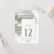 Une peinture à l'aquarelle dans les tons étincelants de vert olive avec des éclaboussures de lavande accentue les pièces de cette belle suite mariage. La carte de numéro de table mariage présentée ici présente également une calligraphie manuscrite élégante et un modèle pour ajouter facilement vos propres noms et la date de mariage. Recherchez ID886 pour voir d'autres pièces et choix de couleurs pour cet ensemble.