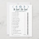 Ajoutez un peu de plaisir céleste à votre douche nuptiale avec notre minimaliste Moon Phases Celestial Blue Collection jeu, "Il a dit, elle a dit." Ce jeu est un excellent moyen de faire rire et interagir les invités en essayant de deviner qui a dit quoi, la mariée ou le marié. Le design est d'une esthétique simple et nette, avec un décor blanc propre qui renforce le thème céleste. En haut de la carte de jeu, les cinq phases de la lune sont affichées dans une belle couleur bleu clair, ajoutant une touche céleste au design. Le jeu comprend 15 questions, chacune avec une déclaration que la mariée ou le marié peut avoir faite. Les clients doivent faire le tour de l'icône de la robe mariage s'ils pensent que la mariée l'a dit ou de l'icône de la veste de smoking s'ils pensent que le marié l'a dit. C'est un moyen amusant et léger de tester la connaissance du couple par les invités et de voir comment ils connaissent la mariée et le marié. Le design minimaliste de cette carte de jeu facilite la coordination avec votre décor de douche nuptiale et d'autres objets célestes. Que vous soyez l'hôte d'une douche nuptiale traditionnelle ou d'une célébration plus moderne, ce jeu complètera votre thème magnifiquement. Préparez-vous à un rires et une compétition amicale avec notre jeu de douche nuptiale Minimalist Moon Phases Celestial Blue Collection, "Il a dit, elle a dit."