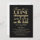 Élégantes invitations de fête du Nouvel An avec un amusant "Time to Drink Champagne and Dance on the Table" citation stylisée en noir et or comme un design de typographie vintage. Inclut du texte personnalisé qui peut être personnalisé pour votre occasion spéciale.