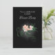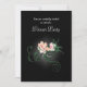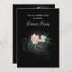 Une invitation à dîner classe et élégante avec l'illustration de quelques délicates fleurs roses fleuries avec des tourbillons verts et des feuilles sur un arrière - plan noir. Des ombres gris clair éclatantes centrées autour des fleurs accentuent et éclairent leur beauté.