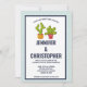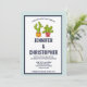 Une invitation de mariage décontractée amusante avec une illustration fantaisiste présentant 2 petits cactus heureux assis dans leurs propres pots de fleurs. Ils ont chacun leurs propres expressions uniques, ayant l'air heureux et joyeux. Le fond est un motif de pois vert menthe.