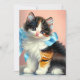 Carte avec un chaton calico mignon. Le chaton porte un ruban bleu assis adorablement sur une table. Un cadeau parfait pour les amoureux de les chats et les amateurs d'art victorien !
