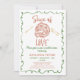 Illustration Whimsical Slice Of Love Bridal Shower Invitation Whimsical pizza bridals douche invitation avec une pizza en tranches et quelques couverts. Cette invitation à la douche nuptiale dessinée à la main comporte également une bordure de cadre décalée et un motif à l'arrière.