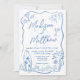 Cette magnifique carte d'invitation à un mariage sur la plage présente des illustrations fantaisistes dessinées à la main, dans une ambiance ludique et romantique. Les gribouillis complexes, caractérisés par des lignes ondulées et ondulantes, apportent une touche d'unicité et de sens personnel à votre faire-part de mariage. La palette bleue apaisante complète le design artistique, ce qui en fait un choix parfait pour les couples qui cherchent à insuffler un peu de plaisir et de créativité dans leur journée spéciale. Laissez cette invitation donner le ton d'une joyeuse fête remplie d'amour et de rire. Découvrez nos produits de coordination disponibles en magasin pour un look cohésif et élégant. c) Jamais après le Mariage