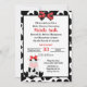 Cute Cow Imprimer Baby Shower Invitations avec un arrière - plan motif de vache et d'arc rouge et noir pointillé. Image mignonne d'un veau avec un bandana rouge. Idéal pour un baby shower à thème de la ferme ou la mère d'être qui aime les vaches.