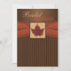 Cette invitation nuptiale de douche de rayures bronzages, brunes, et oranges a un ruban IMPRIMÉ coloré orange-foncé là-dessus avec une image d'une feuille d'érable sèche encadrée sur un arrière - plan rayé brun. Elle serait parfaite pour une chute ou une douche ou une partie d'automne. Si vous avez besoin de n'importe quels autres articles assortis, envoyez svp niteowlstudio@gmail.com.