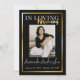 Une façon sincère et digne d'honorer et de se souvenir de votre être cher. Conçue avec le plus grand soin et le plus grand soin du détail, cette invitation combine l'élégance intemporelle de l'or à la solennité du noir, créant un souvenir vraiment raffiné et respectueux. La personnalisation est au coeur de cette invitation, vous permettant d'honorer la mémoire de votre être cher d'une manière unique. Le devant de l'invitation est orné de la phrase "In Loving Memory", un doux rappel du lien profond que vous avez partagé. Le design élégant crée une atmosphère sereine, donnant le ton d'un service commémoratif significatif et sincère.