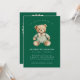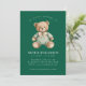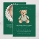 A tender tribute to a precious child, this announcement card features a charming watercolor teddy bear against a rich green backdrop. The phrase "In Loving Memory" is elegantly displayed, setting a solemn yet loving tone. The design includes space for the child's name and service details, making it a functional and beautiful way to share the news of their passing. The gentle imagery and heartfelt message provide comfort during a difficult time.