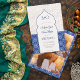 Nos invitations de mariage d'inspiration marocaine avec une belle arche bleue royale et un bloc de couleur en bois fleuri sont le choix parfait pour une célébration mariage unique et inoubliable. Préparez-vous à impressionner vos invités et donnez le ton pour votre grand jour, avec de jolies initiales, ajoutez 3 de vos photos, les couleurs sont entièrement modifiables. Idéal pour un mariage exotique et tropical de destination.