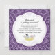Commencez votre évènement par notre invitation à la douche nuptiale moderne et branchée, avec une mignonne paire d'inséparables habillés en tenue mariage dans un nid dressé sur un arrière - plan mauve damassé. customisez notre invitation avec vos informations mariages et vous êtes prêts à partir.