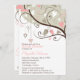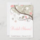 Invitation à la douche nuptiale en rose et gris de Whimsical Inséparables Illustrations adorables et fantaisistes de lovebirds roses et gris perchés sur un arbre plein de coeur avec des cordes pendantes. Très mignon et doux, parfait pour les douches nuptiales extérieures.