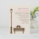 Les invitations aux mariages fantastiques et sucrées illustrent de façon romantique deux inséparables perchés sur un banc du parc. Art par Babystar Design.