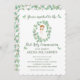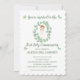 Invitación de Primera Comunión con motivos de eucalipto en acuarela de la colección ALEXIA con borde de ondas.