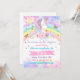 Girl birthday invite, unicorn, rainbow, stars, gold glitter.