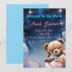 Accueillez votre petit garçon de la plus douce des manières ! Cette invitation de rêve présente un ours en peluche câlin tenant un nouveau-né endormi, sur un ciel nocturne magique plein d'étoiles scintillantes. Parfait pour les fêtes prénatales, les faire-part de naissance ou les fêtes de bienvenue. Modifiez et personnalisez facilement pour votre événement spécial !
