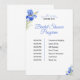 Elegant bridal shower program card featuring blue iris florals.